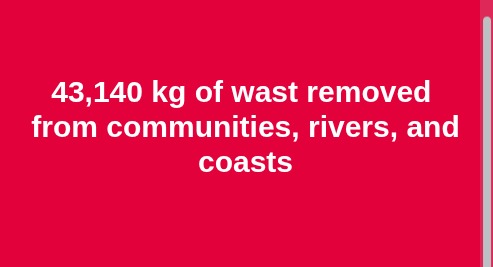 ✅ ~43,140 kg of plastic collected from communities, rivers, and coasts