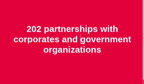 ✅ 202 partnerships with corporates and government organizations