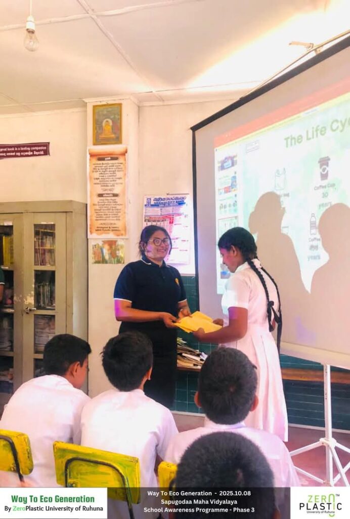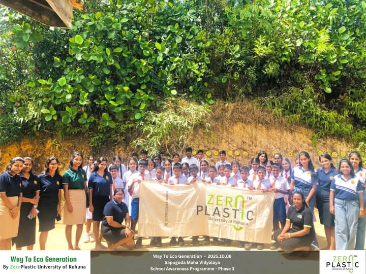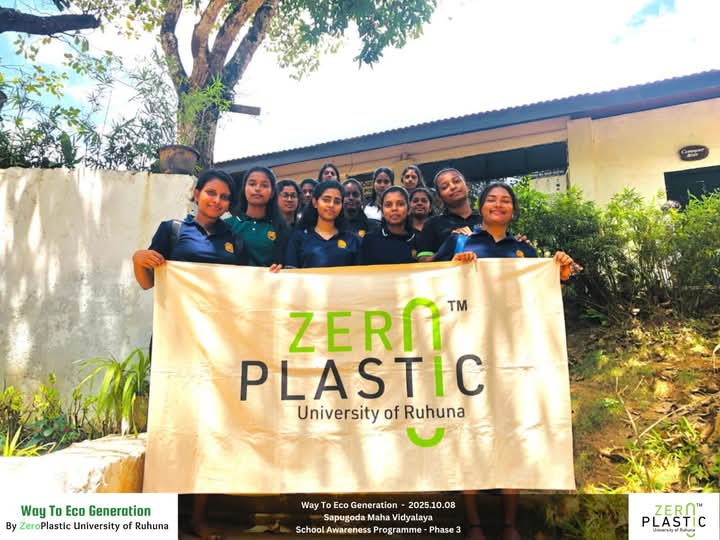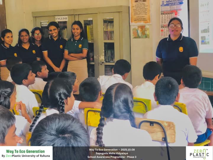 The ZeroPlastic Club of the University of Ruhuna opened another meaningful chapter in its ongoing mission to build a greener future on October 8, 2025. As part of the “Way To Eco Generation – School Awareness Programme (Phase 03)”, the team conducted an inspiring awareness session at M/Sapugoda Rathanapala Vidyalaya, bringing knowledge, enthusiasm, and a renewed sense of environmental responsibility to young learners.