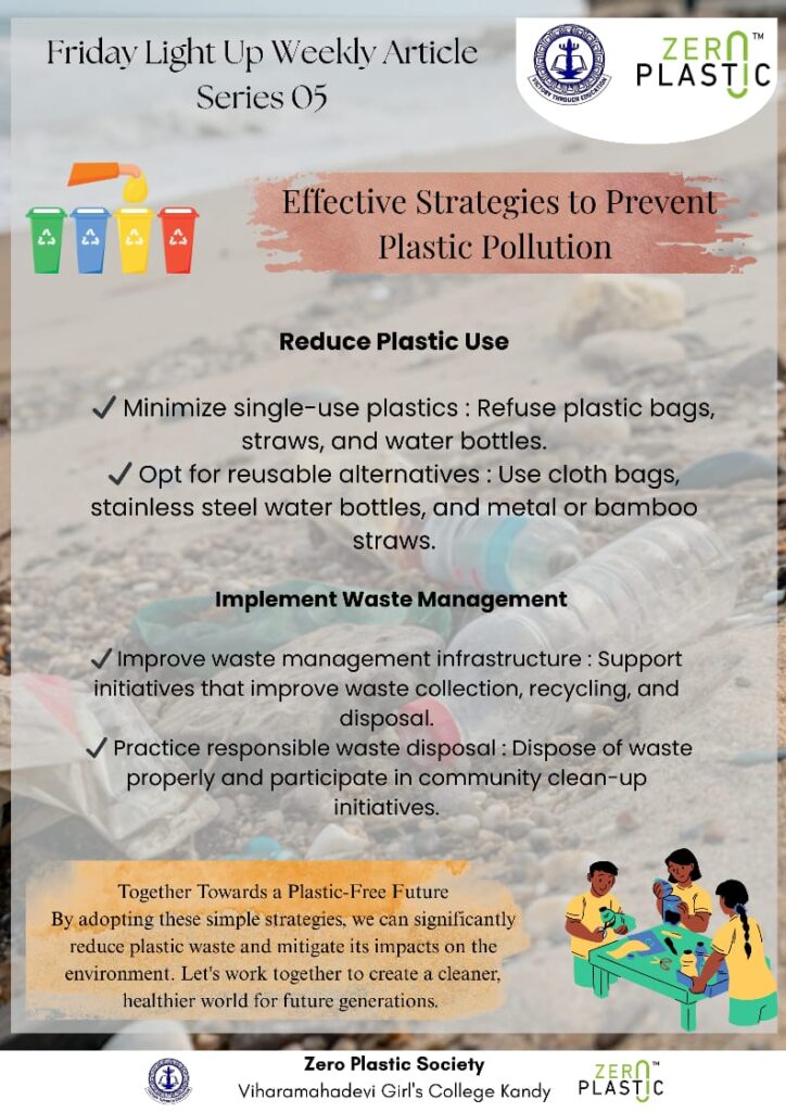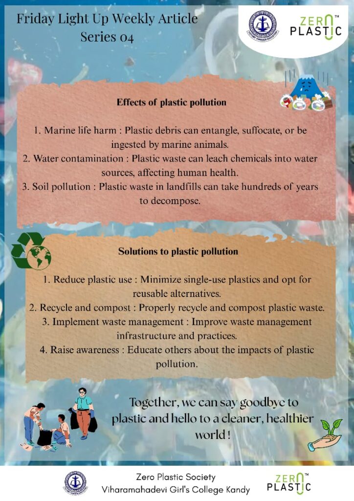 Every Friday, the ZeroPlastic Club of Viharamahadevi Girls’ College, Kandy, lights up the week — not with lamps, but with ideas that inspire change. Friday Light Up is a weekly article series written by students, for students, dedicated to protecting our planet and promoting a plastic-free future.