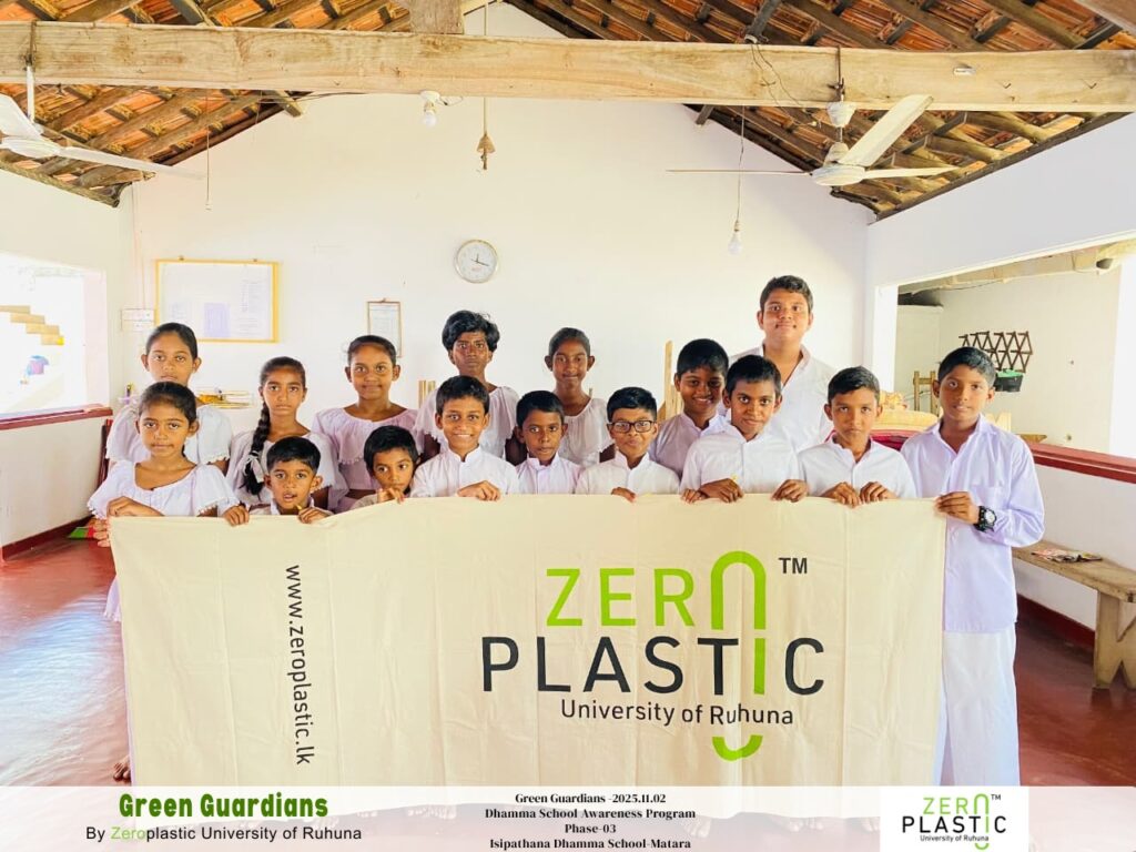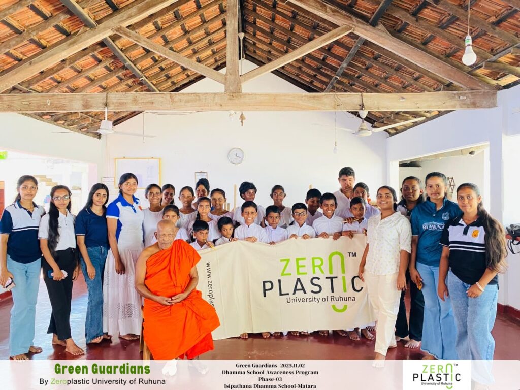 Green Guardians, an environmental awareness programme organized by the ZeroPlastic University of Ruhuna Community, brings together the teachings of Buddhism and the principles of sustainability to inspire the next generation of mindful, eco-conscious citizens.