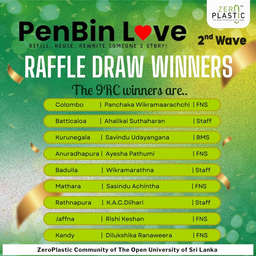 The winners received eco-friendly gifts made from recycled materials, generously sponsored by partners who share a passion for sustainability. The recipients came from all walks of university life — a lecturer from Batticaloa, a security officer from Badulla, and a non-academic staff member from Rathnapura — showing how inclusive the initiative is.